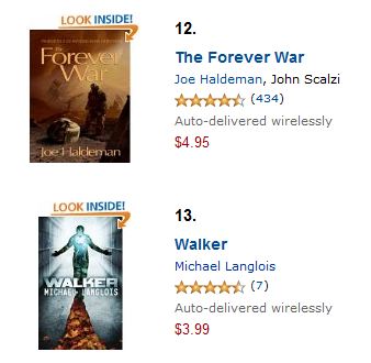 This is actually the second day of top ten excitement. Walker is on three Amazon bestseller lists at the moment, one of which is pretty large, Fiction/Action&Adventure. So that’s pretty cool.