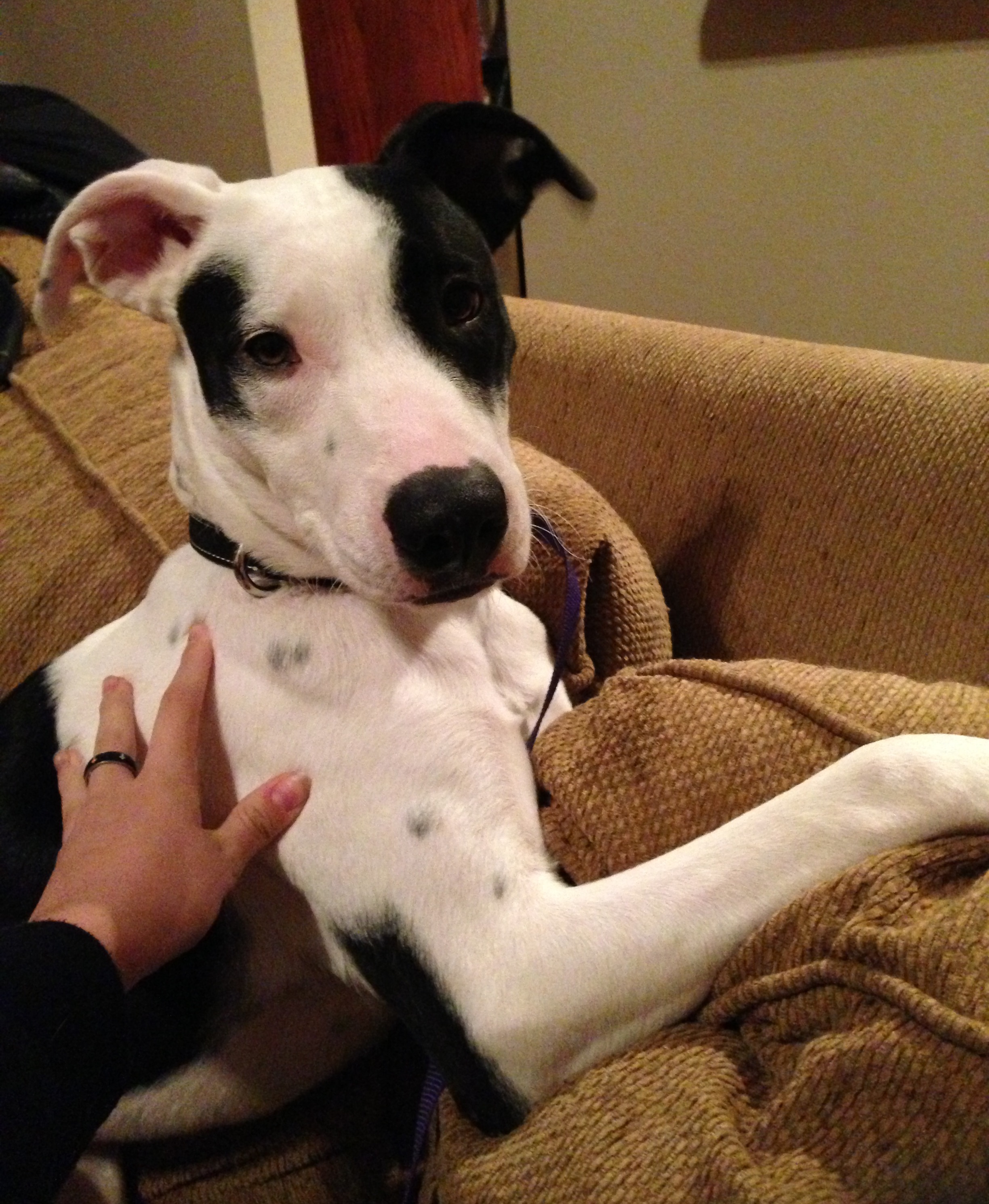 Meet Mojo (or as the wife insists, MeauxJeaux). He’s an eight month old pit-mix from the Jan Reese SPCA shelter in North Texas. We’re not sure what he’s mixed with, but from the size of his paws, I’m thinking mastodon or draft horse.