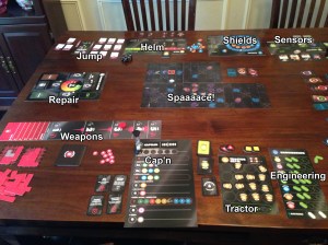This is the secret sauce of this game and the reason why I love it. Unlike other games, *cough*Space Alert*cough*, your ship is actually not a piece of crap. In fact, with a skilled bridge crew, you can be really friggin’ powerful. The crew of the USS Hull Breach never managed any real level of badassery, but it was totally possible. In this game, player skill trumps all, which makes it incredibly addicting.