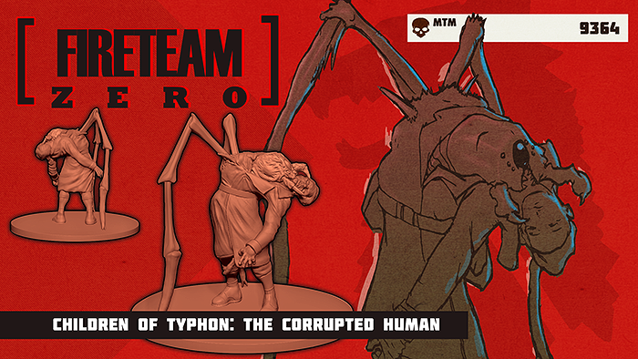 Monsters come in three types: minions, elites, and bosses. A minion is about human-sized, represented by a standard 40mm tall figure. Elites come in at 50mm, and bosses hit a whopping 60mm in height with a proportional increase in girth. The charming fellow pictured above is an elite: the Corrupted Human in the Children of Typhon family. Here’s a bit about him: